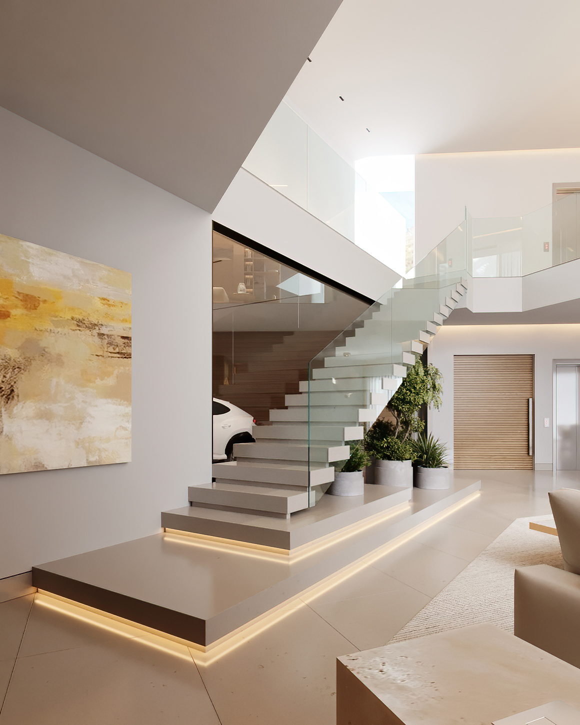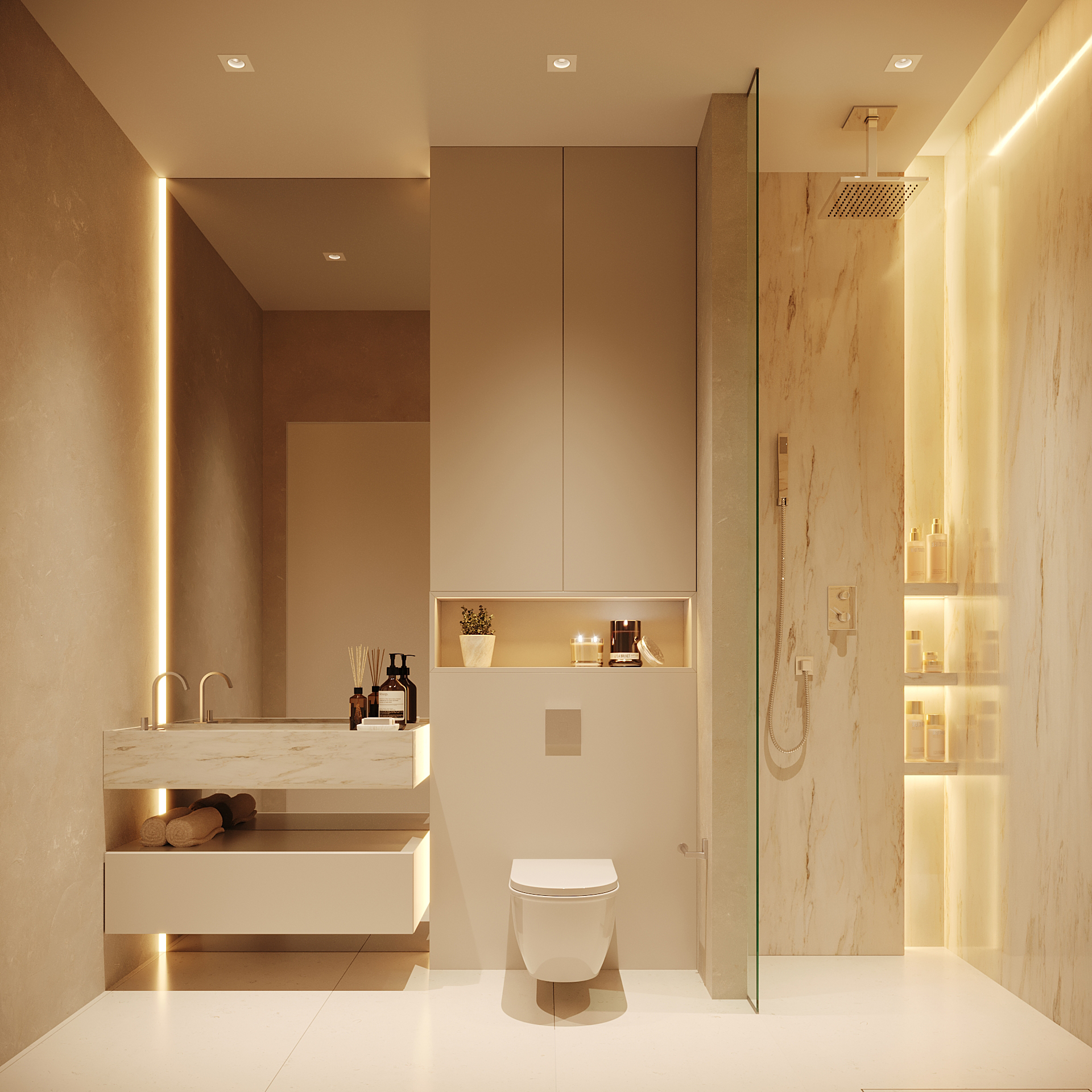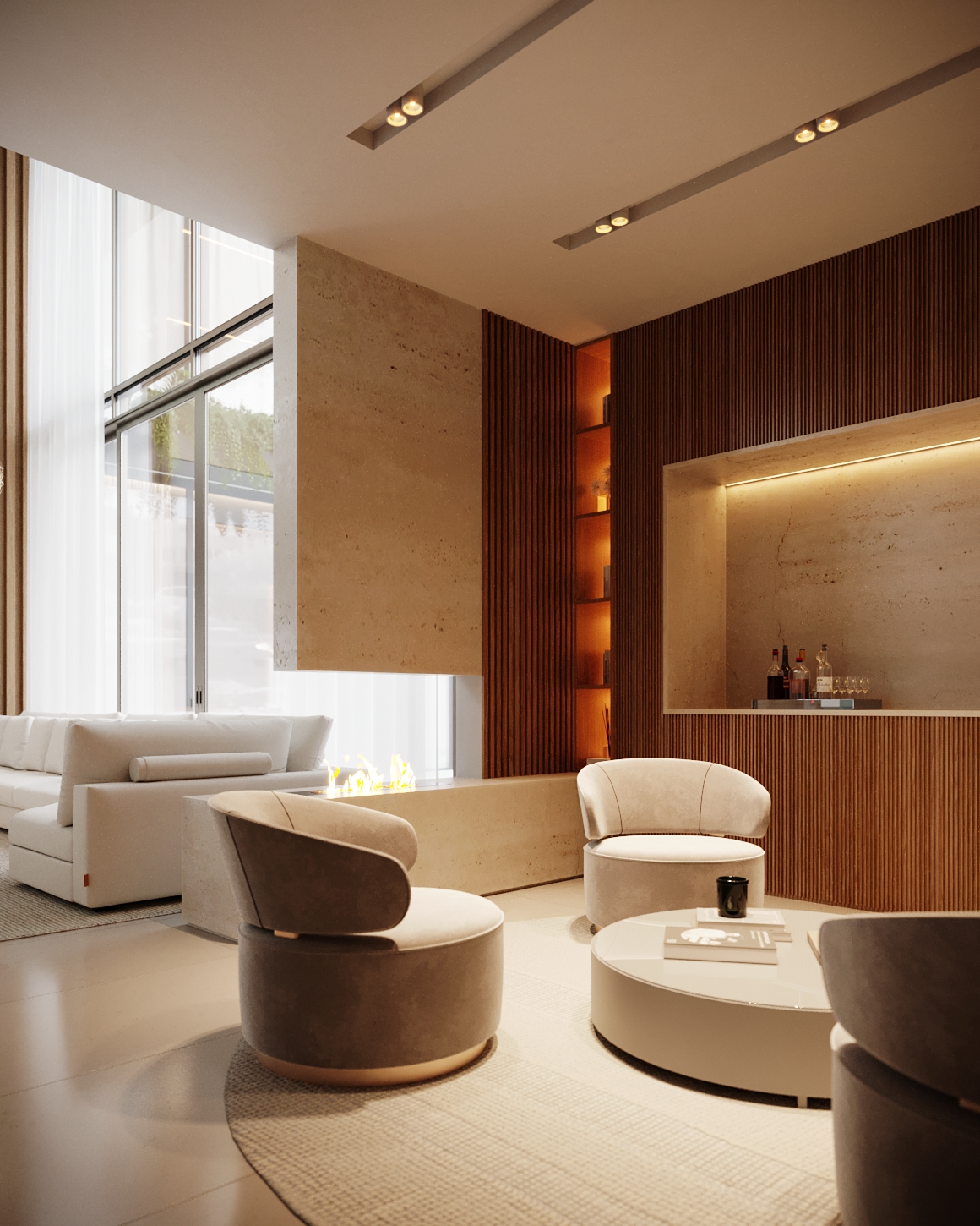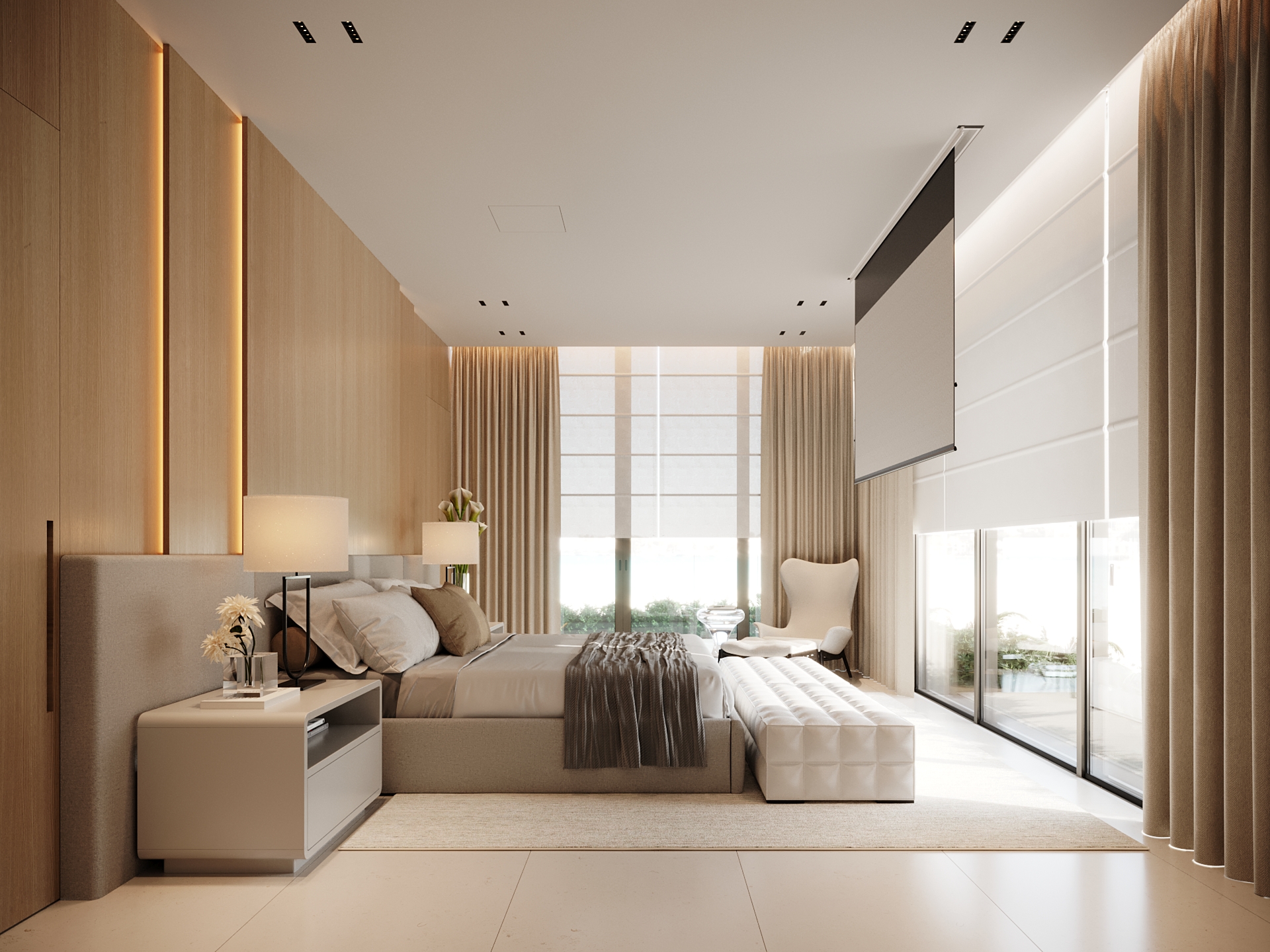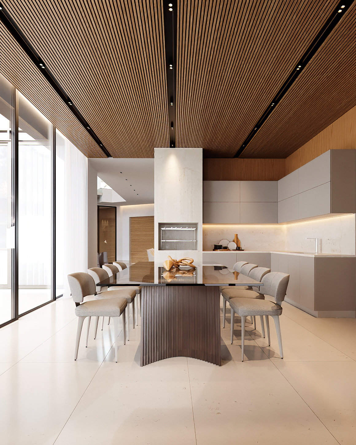Experience modern living in our integrated living, dining, and family room design. A wooden niche enhances openness, while light tones create a sense of space. Vibrant hues in the family room add a contemporary touch, revitalizing the apartment with modern elegance.